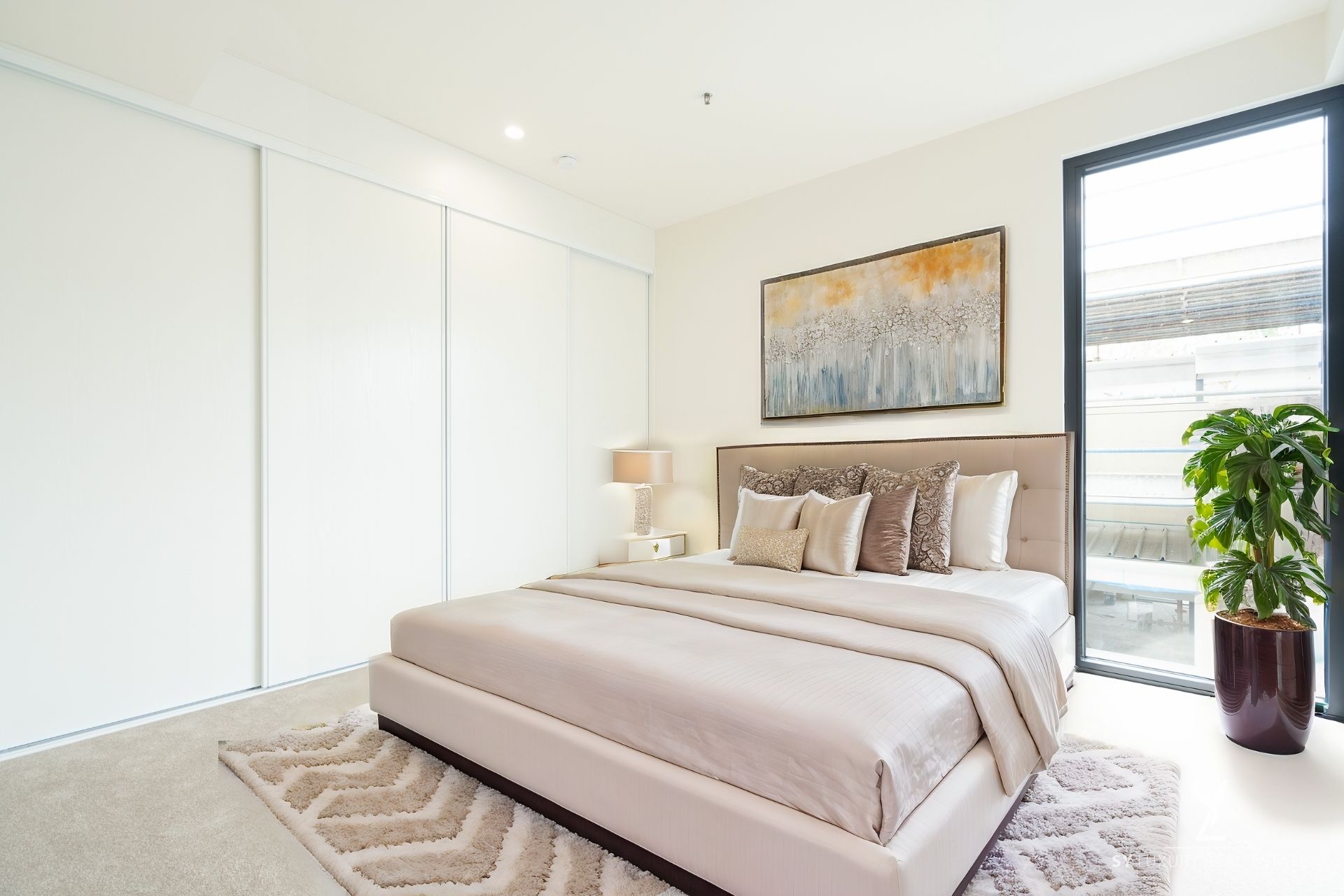 - Floor to ceiling sliding glass doors to balcony