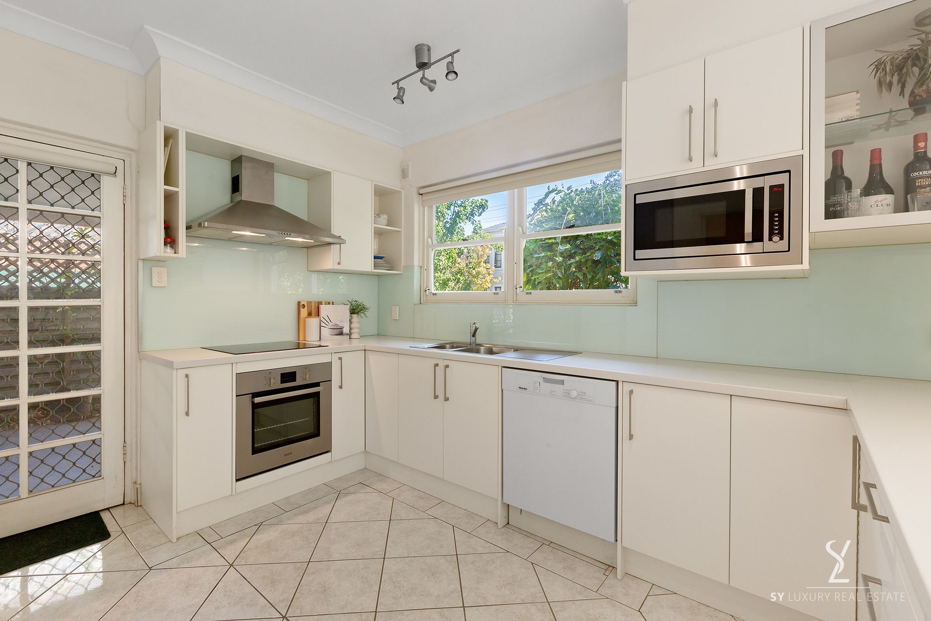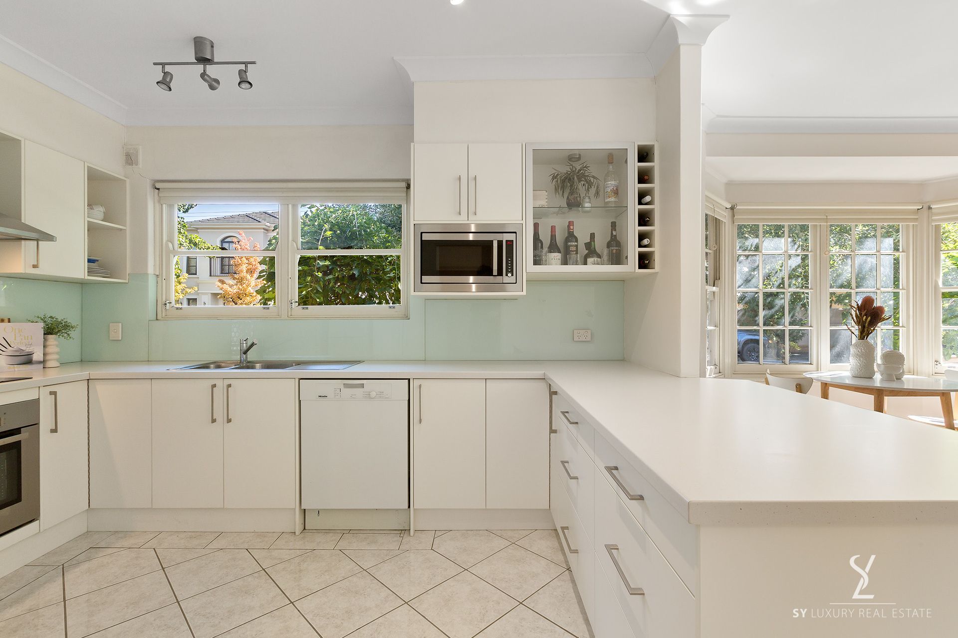 The heart of the home features a spacious open plan living/dining area with recently renovated kitchen adorned with high-end Miele appliances, including a dishwasher and sleek stainless steel fixtures, catering to both casual cooking and culinary pursuits alike.