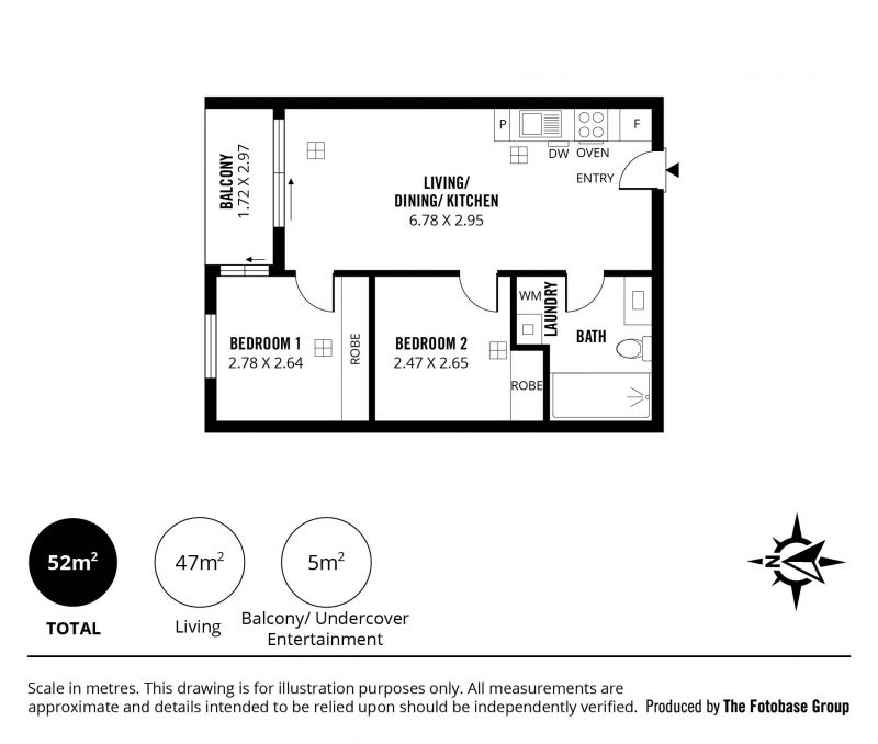 This thoughtfully designed apartment features an open-plan kitchen, living and dining area that is bathed in natural light, leading onto a private north-facing balcony. The main bedroom also opens to the balcony, enhancing fresh air flow throughout. Both bedrooms are equipped with mirrored built-in wardrobes, providing ample storage while enhancing the apartment's modern aesthetic.