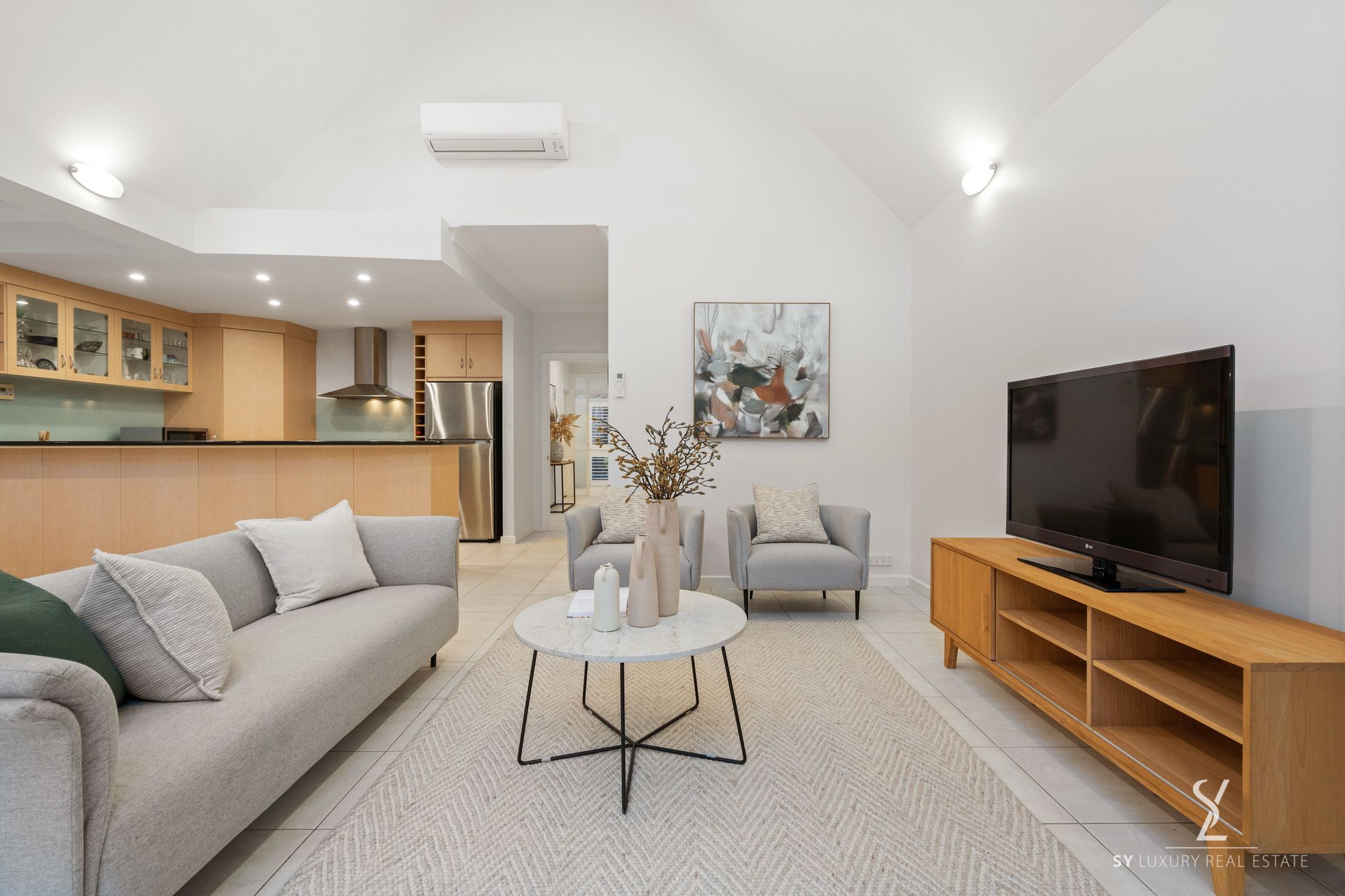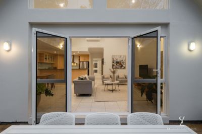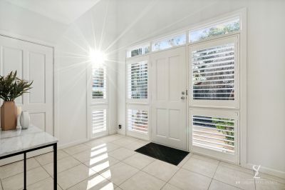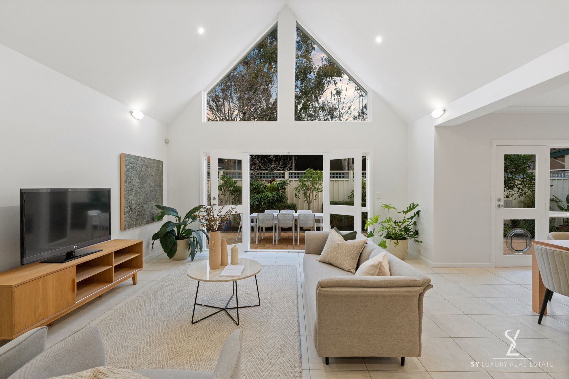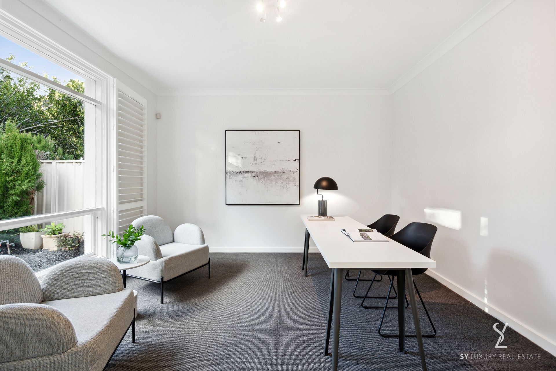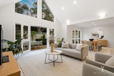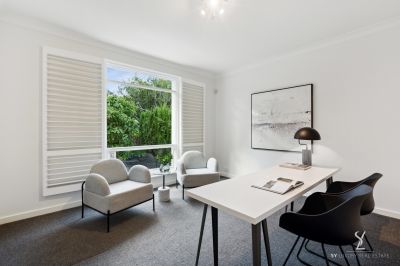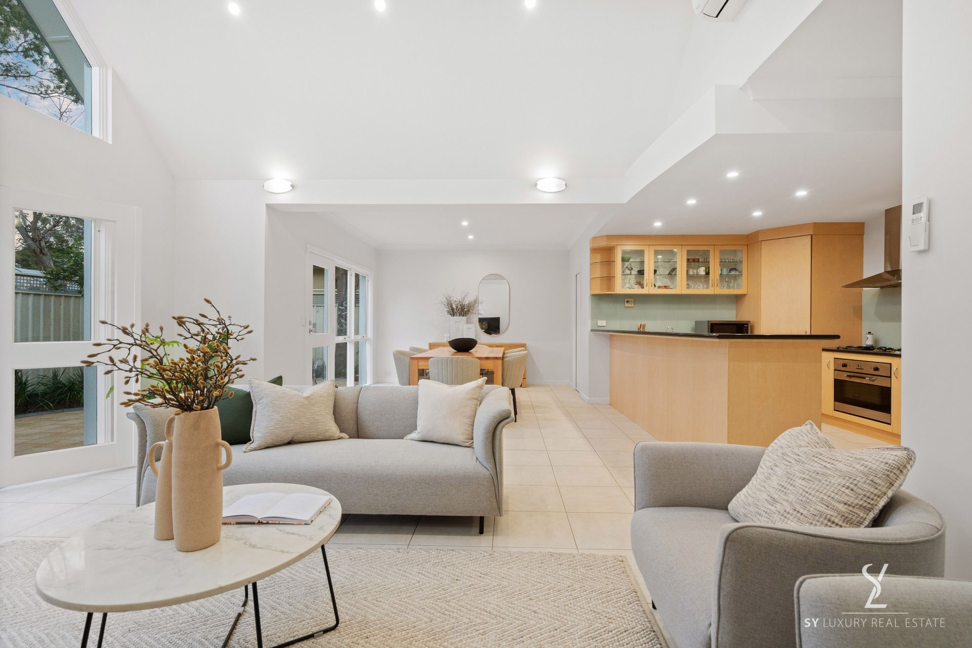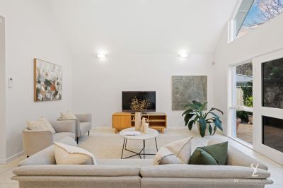 A serene and secluded retreat with a generous sense of space and luminous light, the exceedingly versatile layout features four spacious bedrooms, dual living areas, and three bathrooms. The fourth bedroom, adaptable to your lifestyle, can easily transform into a study or a consulting room as it is intelligently located off of main foyer.
