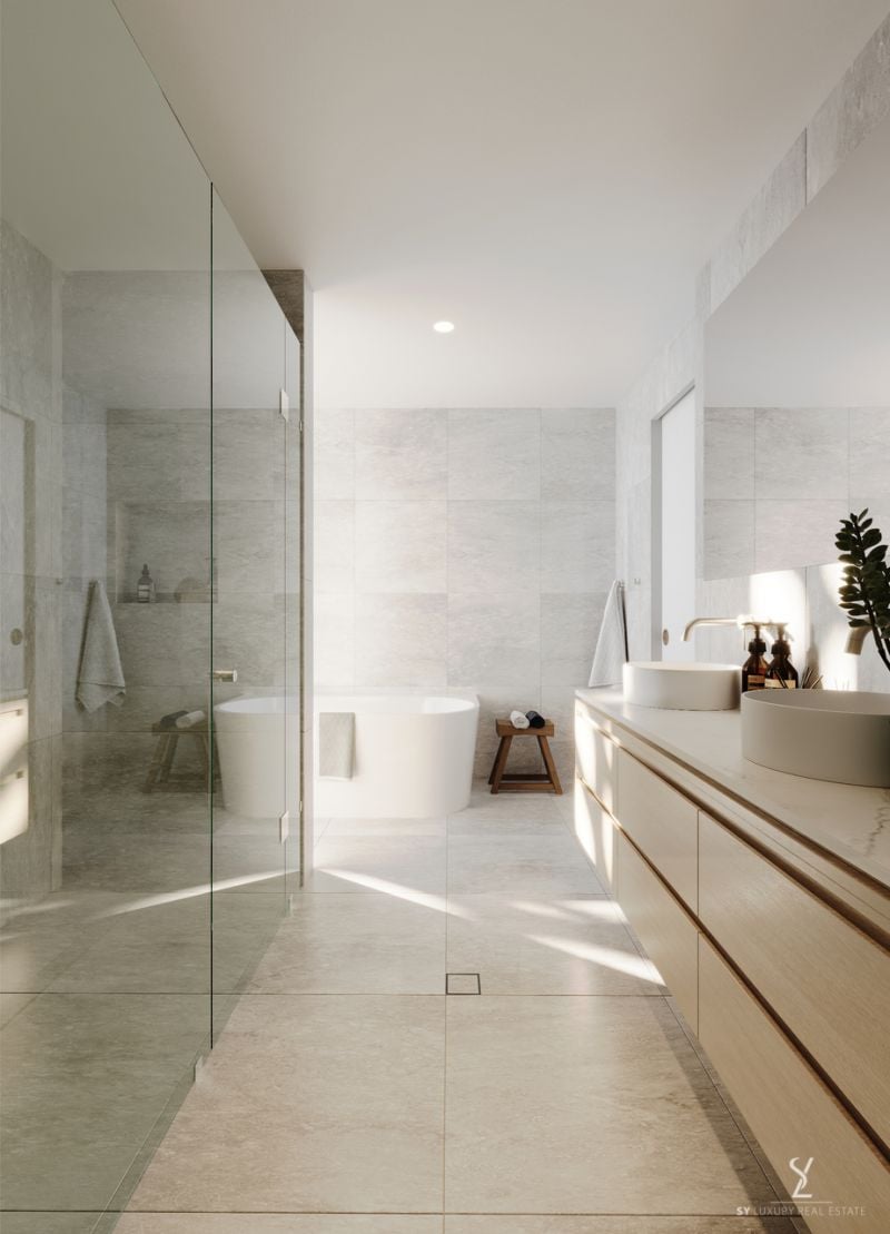 The primary suite features an oversized walk-in robe, luxurious ensuite with double vanity and a deep, indulgent bathtub. The suite's dedicated access to the balcony offers a serene retreat, where you can unwind while enjoying the soft glow of eastern sunrises. Bedrooms two and three are equally spacious, with ample storage and access to a beautifully appointed bathroom.