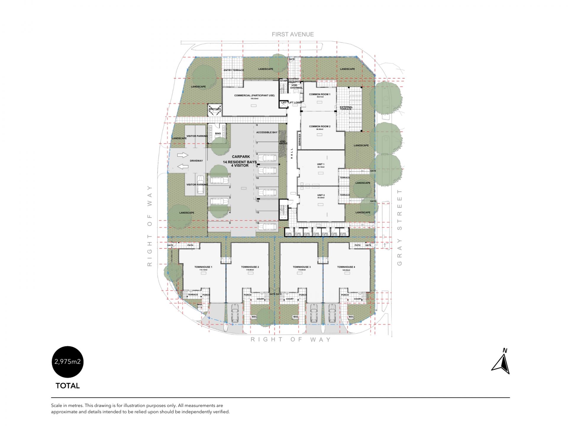 - 15 resident car parks + 3 visitor bays + townhouse parking